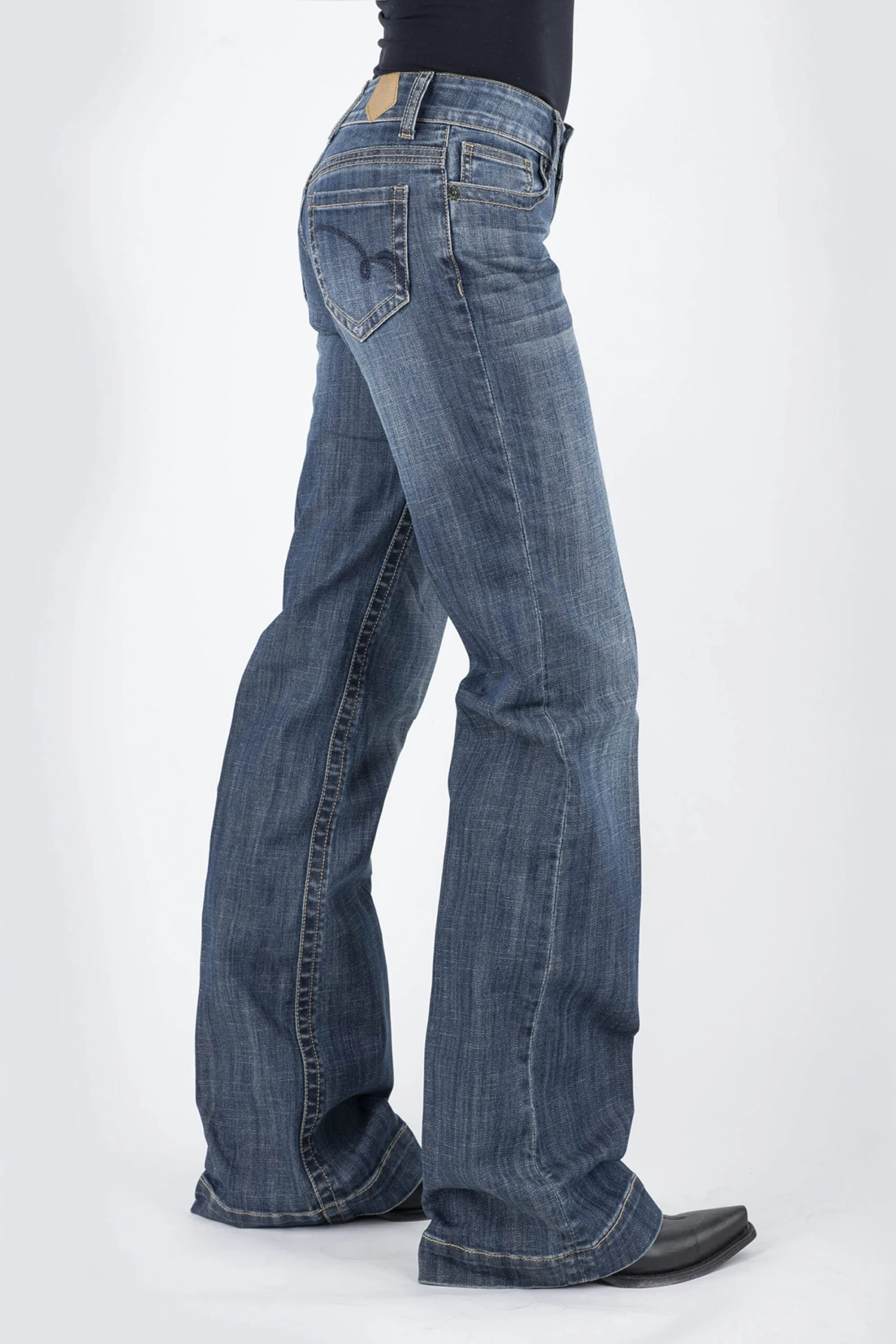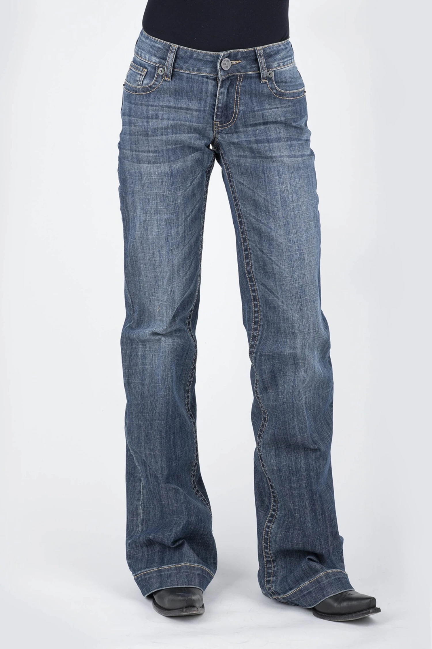 Gal’s Trouser Jean * Sits Just Below The Waist * Moderately Fit Thigh W/Flared Leg Opn * Tin Haul Branded Buttons, Rivets, And Zipper * Navy Loop Embroidery On Back Pocket * Sanding And Whisker Details