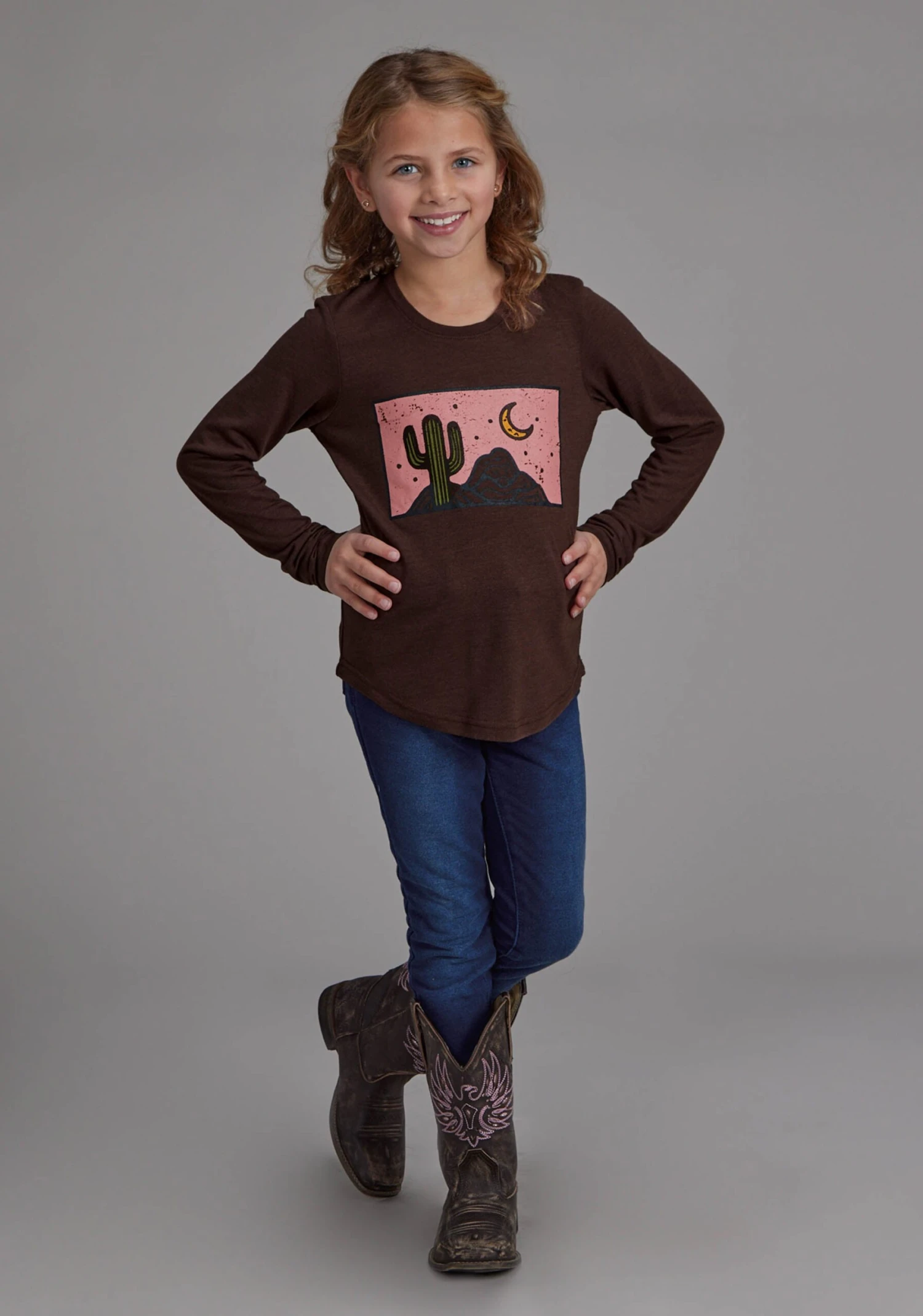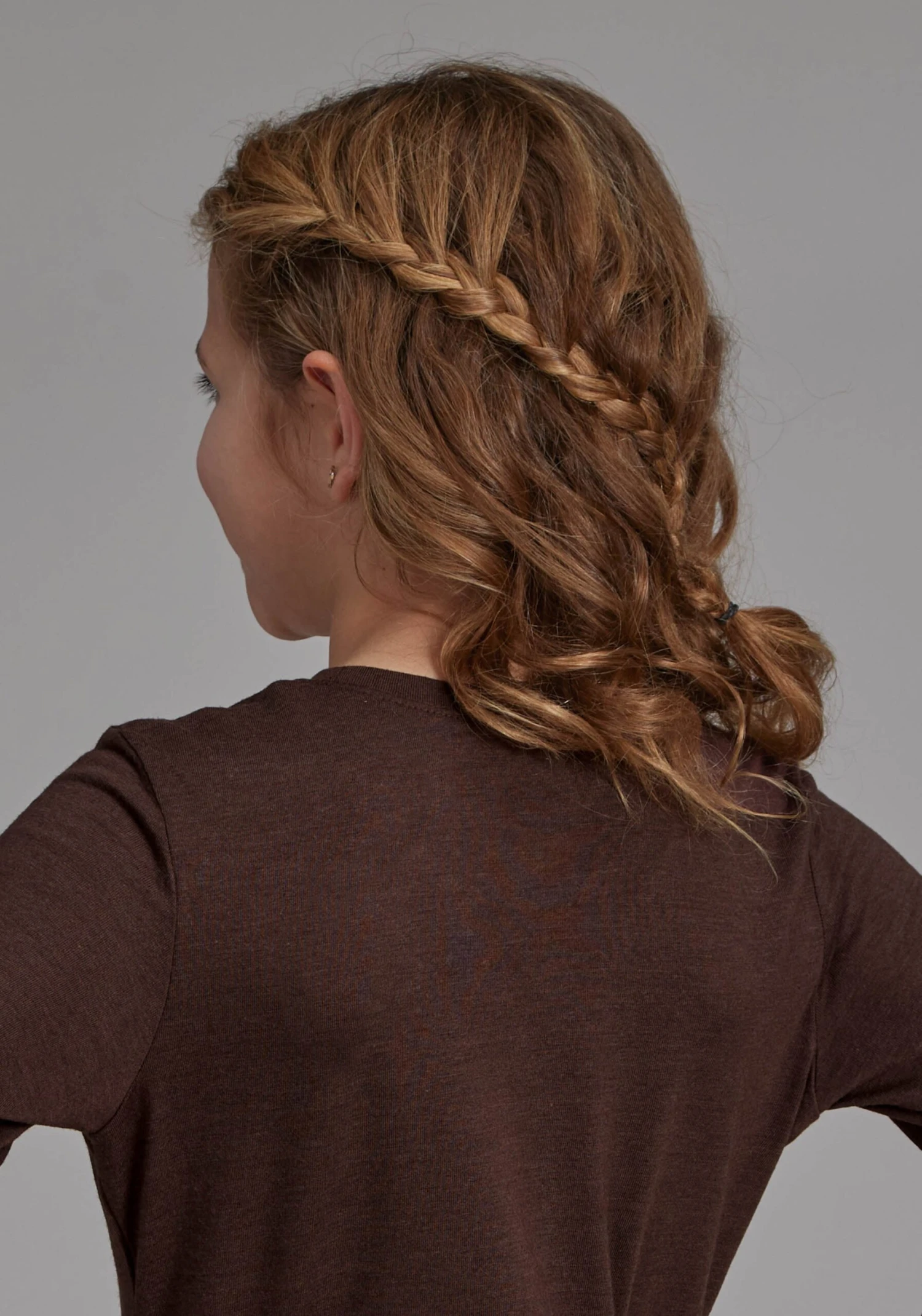 Girl’s Chocolate Brown Jersey Knit Tee * Long Sleeve * Scoop Neckline * Screen Printed Decoration