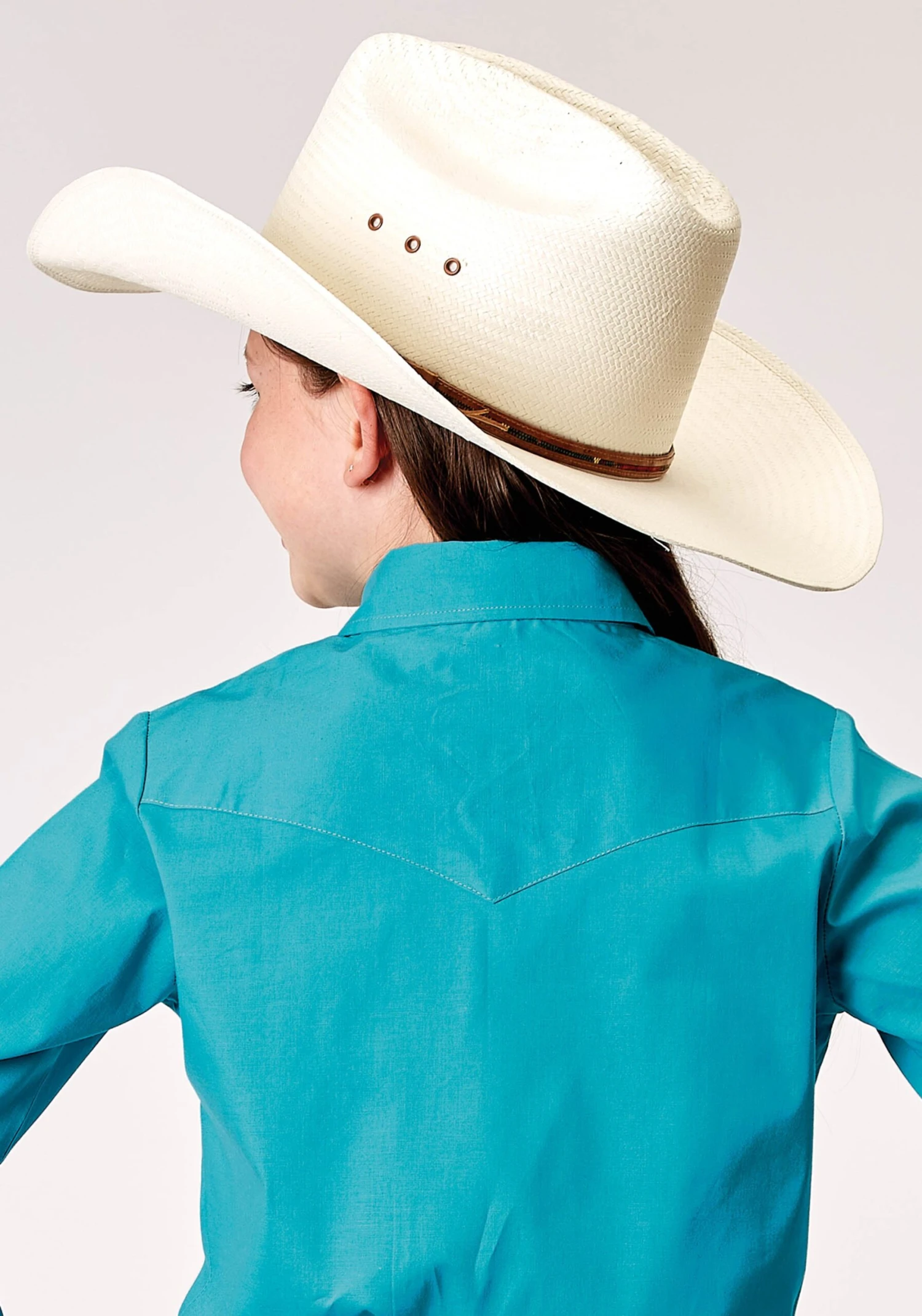 Girl’s Long Sleeve Western Shirt * 1 Point Curved Front Yokes Into Neck * 1 Point Curved Back Yoke * 1 Point Pockets/Flaps * 1 Snap Cuff * Roper “R” Embroidery