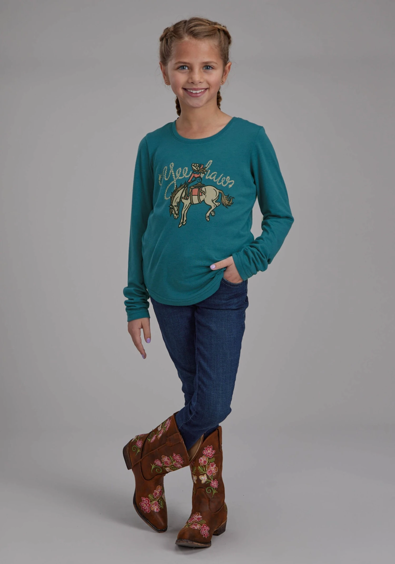 Girl’s Roper Teal Jersey Tee