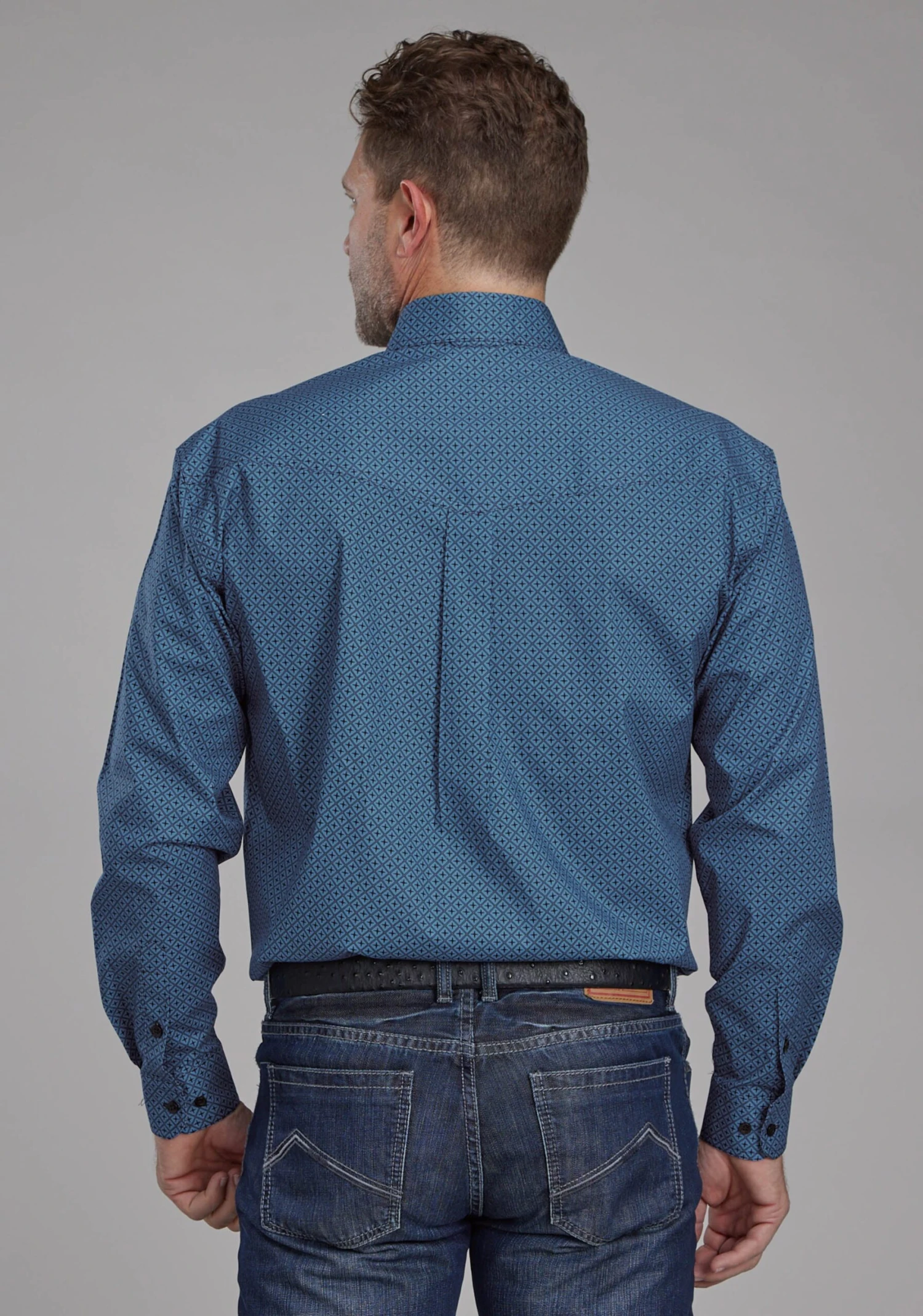 Men’s Long Sleeve Shirt * 97% Cotton/3% Spandex * Bttn Dn Collar * 1 Pt Back Yoke W/Pleat & Locker Loop * 2 One Point Pkts & Flaps * Roper “R” Embroidery