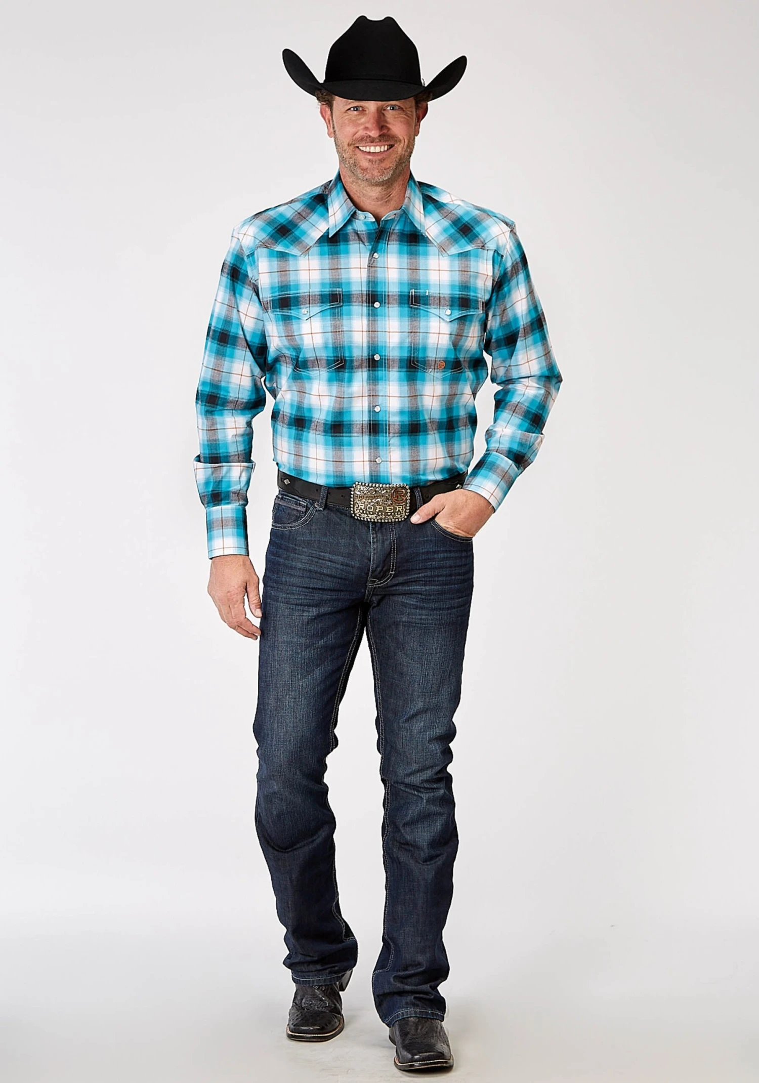 Men’s Roper Turquoise Plaid Western Plaid