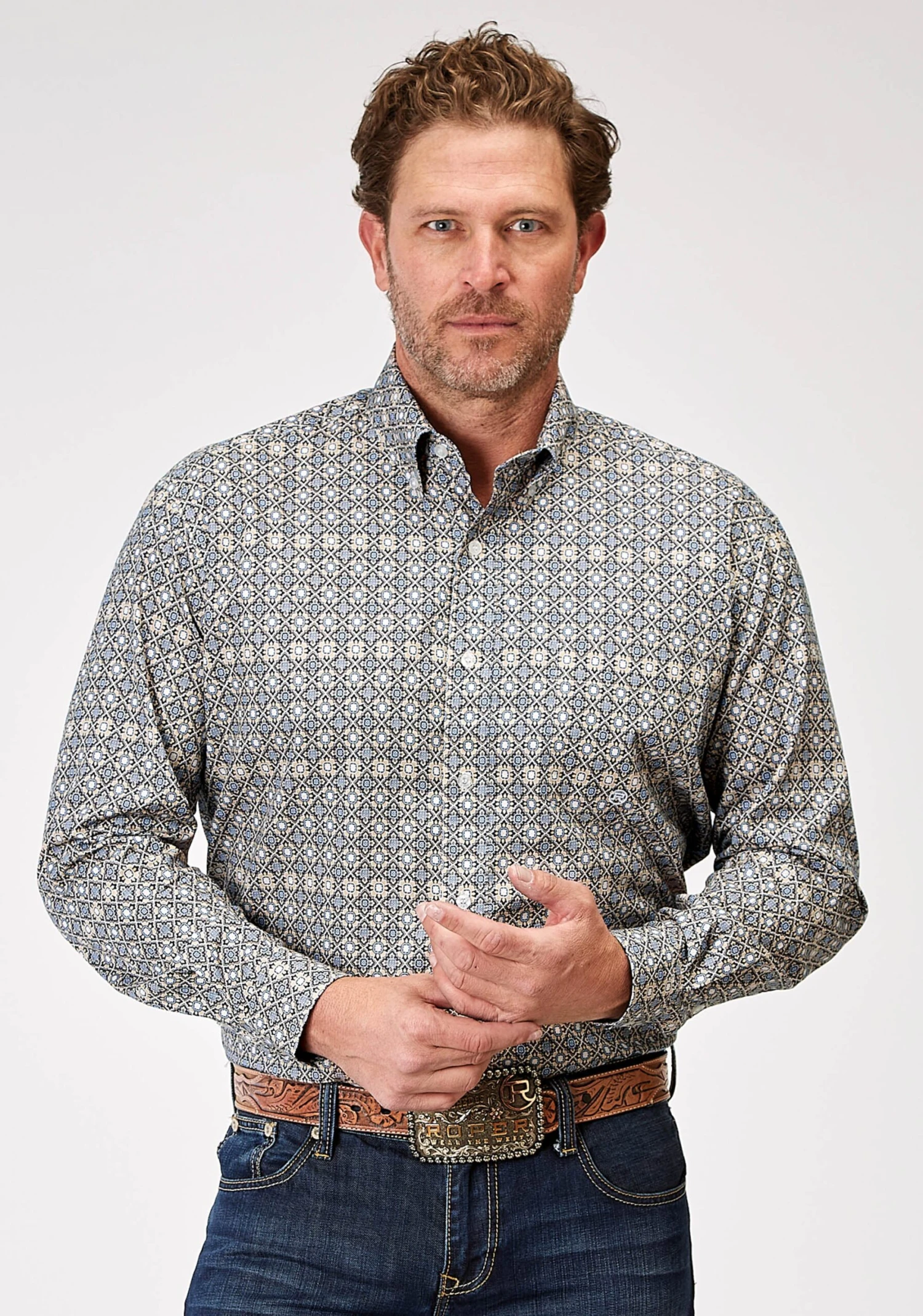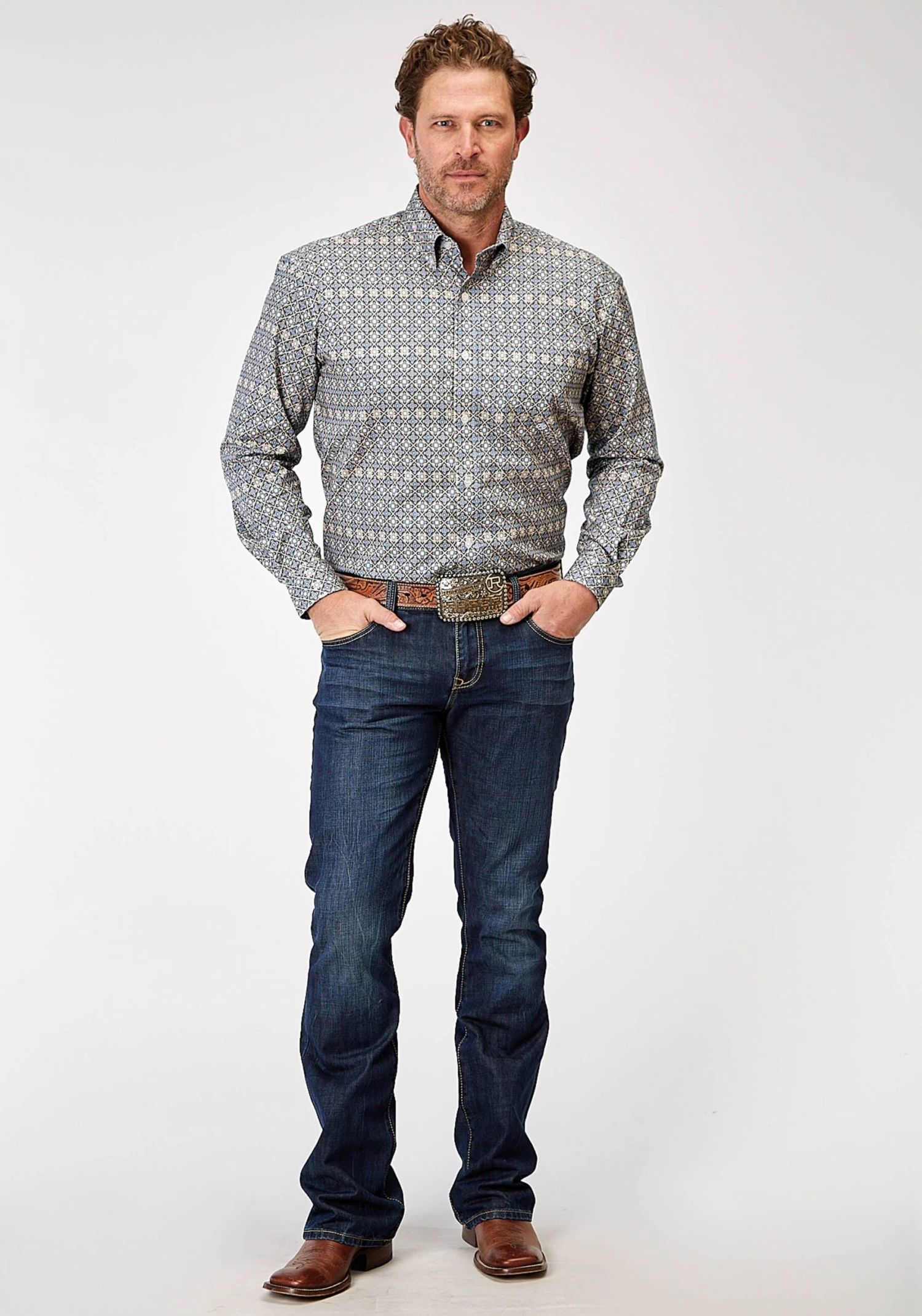 Men’s Long Sleeve Shirt * Bttn Dn Collar * Straight Back Yoke W/Pleat & Locker Loop * 1 One Point Open Pkt * Roper “R” Embroidery