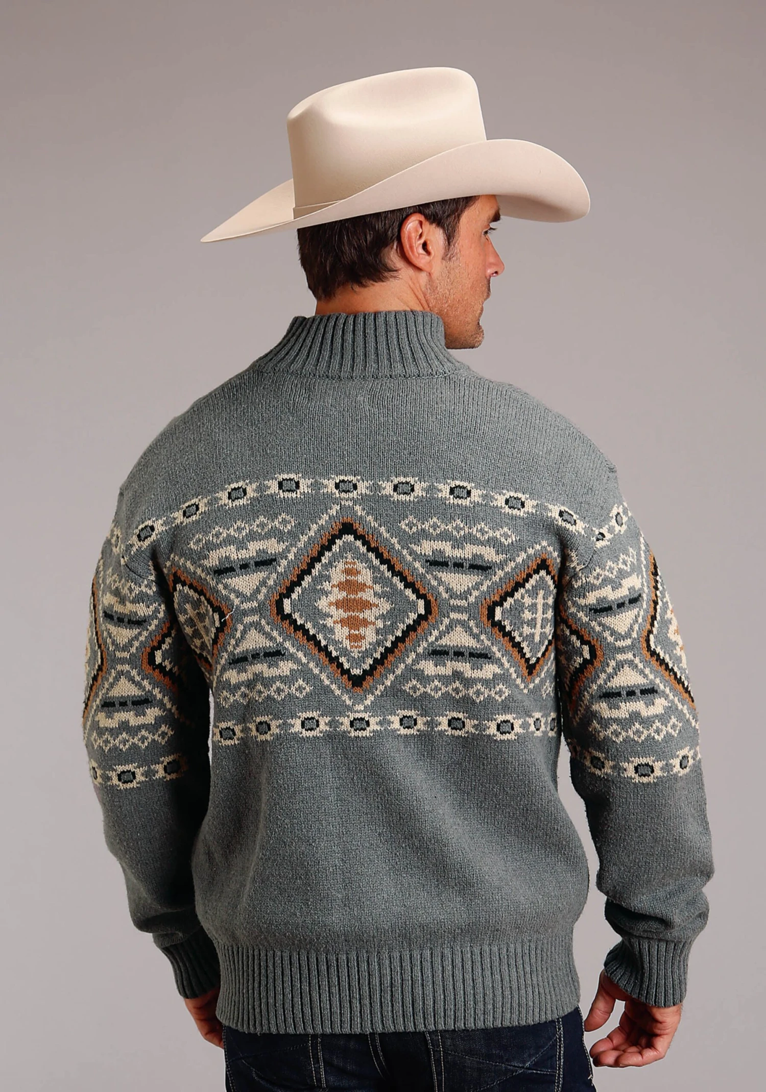 Men’s Stetson Grey Horizontal Aztec Wool Blend Sweater