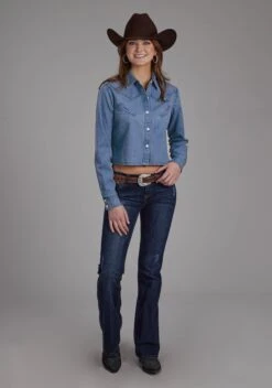 Girl’s Roper Dark Blue Denim Short Sleeve Shirt