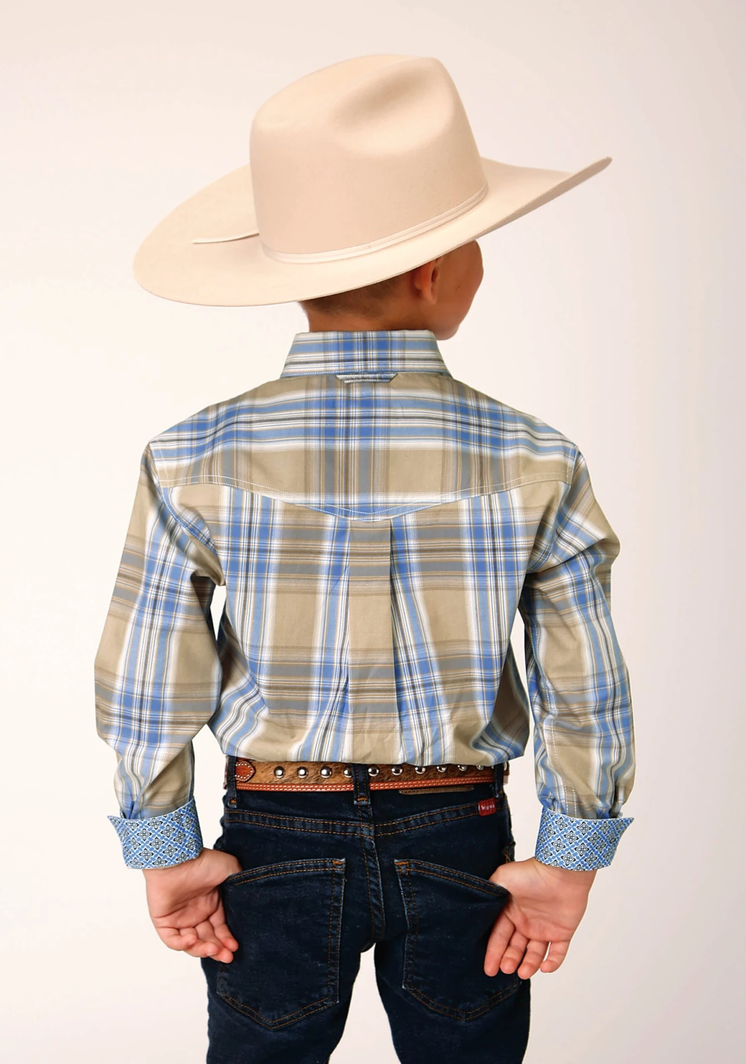 SKU: D2F5B 7914118840567 Category: Boys Tags: 100% COTTON, 1552 SANDY PLAID, 2 Pocket, Amarillo, AMARILLO BTN AC ALLOVER PRINTS, AMARILLO Y/DYED PLAIDS - COTTON, APPAREL, Blue Thistle, Boy's Amarillo Collection- Blue Thistle, BOYS, Button, Color: BLUE, Color: TAN, Long Sleeve, Plaid, Print, PRINTED, Tops, Woven, YARNDYE