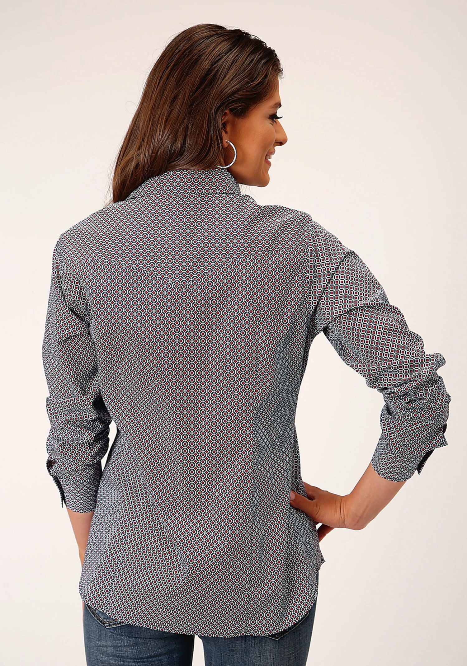 Women’s Long Sleeve Western Shirt * Button Front * One Pt Back Yokes * One Point Flap Front Pockets * One Snap Cuffs * Front & Back Darts * Roper “R” Embroidery