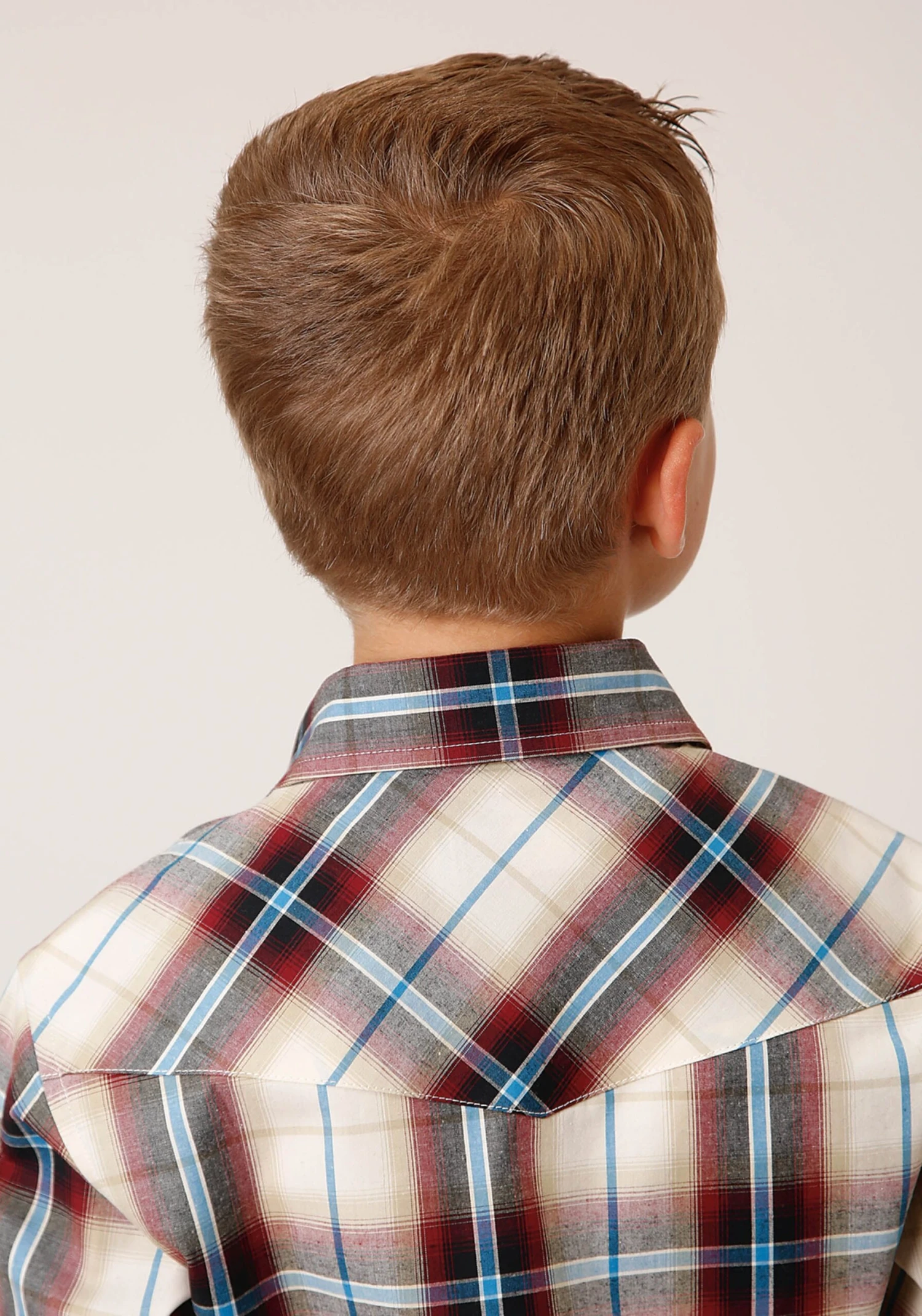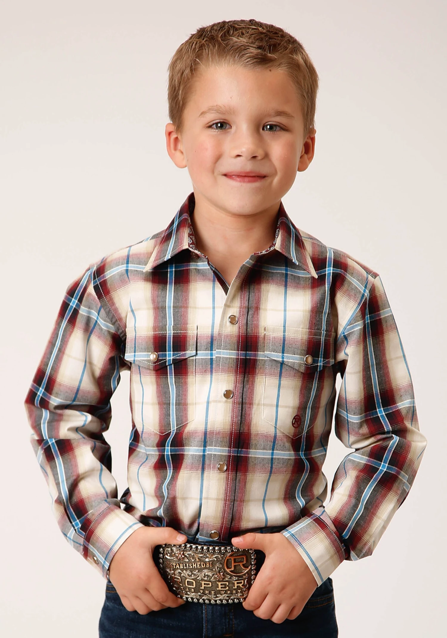 Boys Long Sleeve Western Shirt * Snap Front * Spread Collar * 1 Point Back Yoke * 2 One Point Pockets & Flaps * Roper “R” Embroidery