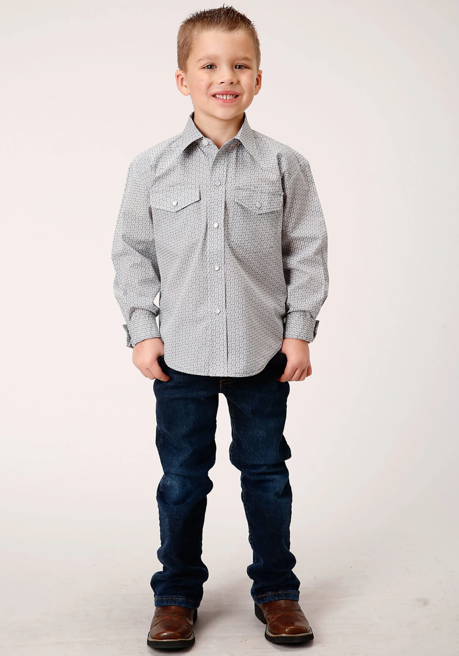 SKU: D2F5B 7857259315447 Category: Boys Tags: 2 Pocket, 55% COTTON / 45% POLYESTER, 828 GREY & WHITE PRINT, APPAREL, BOYS, Color: GREY, Karman, Karman Classics- 55/45 Prints, Long Sleeve, Print, PRINTED, Snap, SNAP PRINT, Tops, Woven