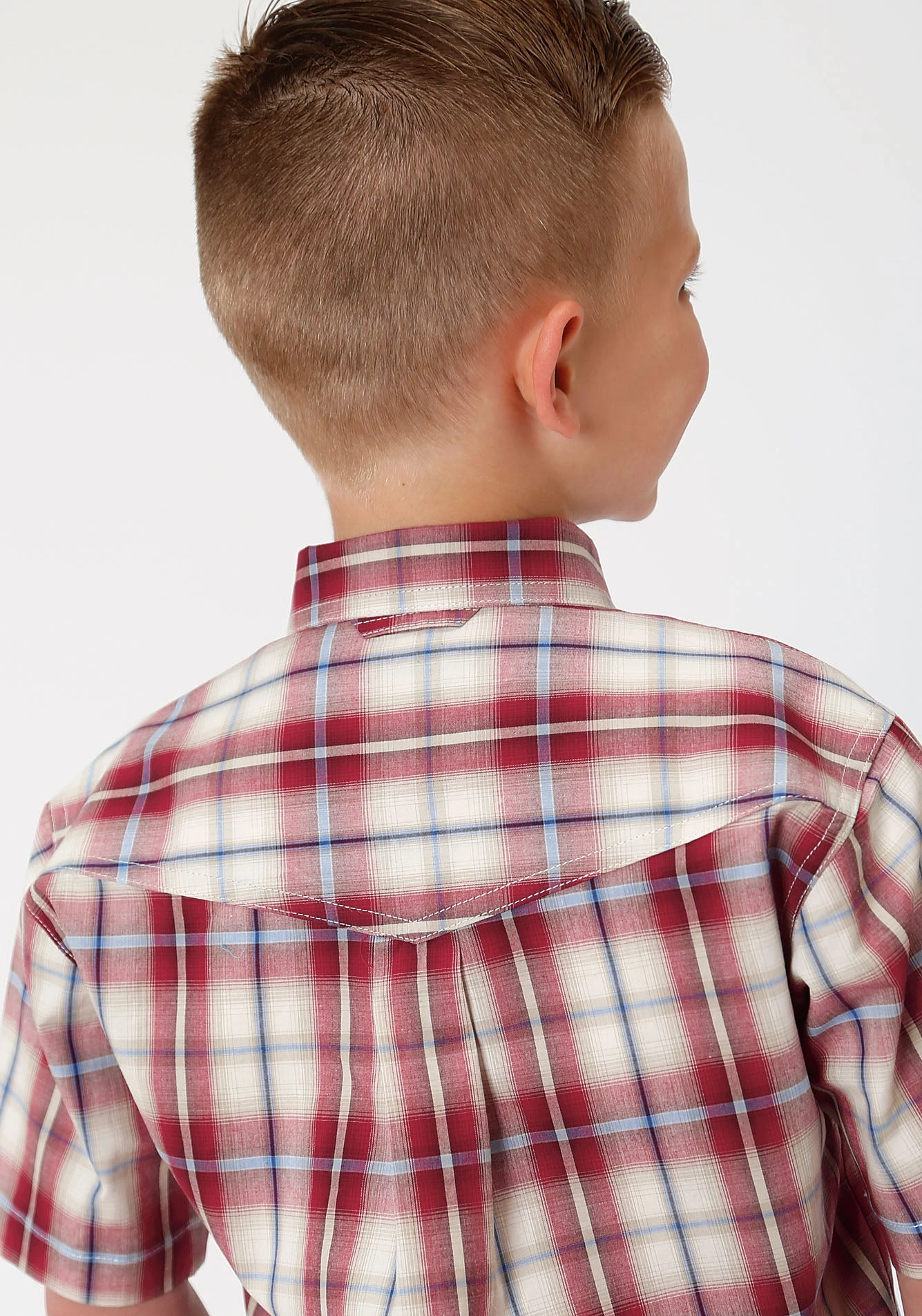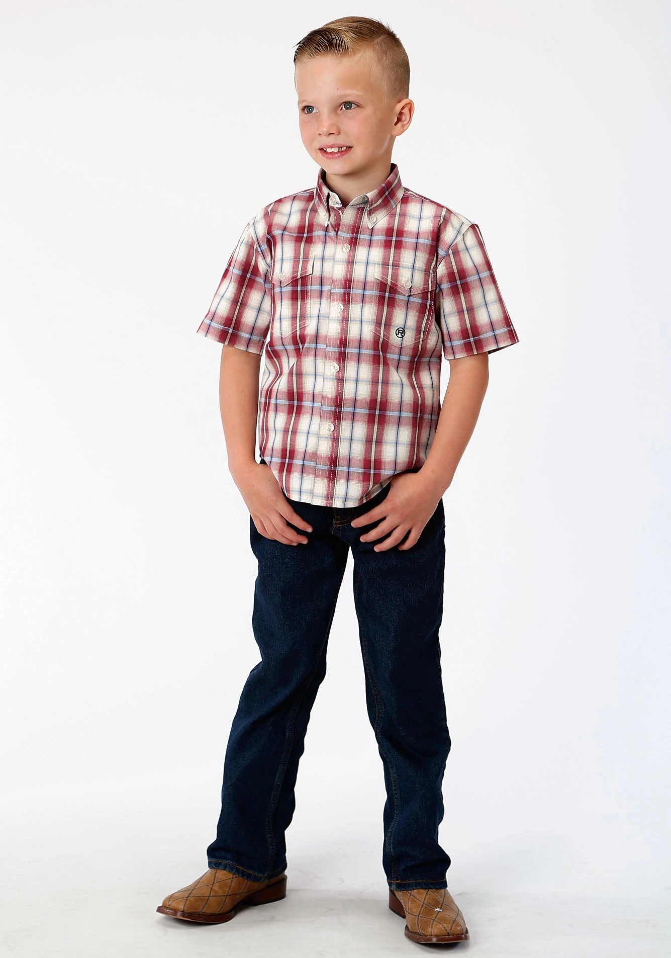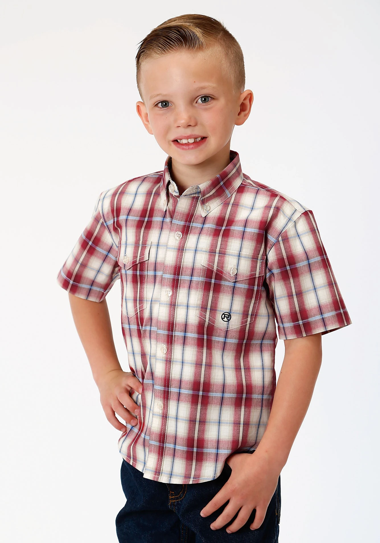 Boys Short Sleeve Western Shirt * Button Front * Button Down Collar * 1 Point Back Yoke W/Pleat & Locker Loop * 2 One Point Pockets & Flaps * Roper “R” Embroidery