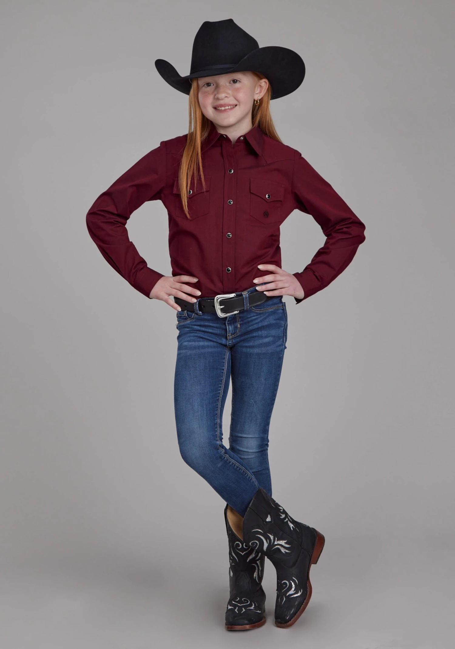 Girl’s Long Sleeve Western Shirt * 1 Point Curved Front Yokes Into Neck * 1 Point Curved Back Yoke * 1 Point Pockets/Flaps * 1 Snap Cuff * Roper “R” Embroidery