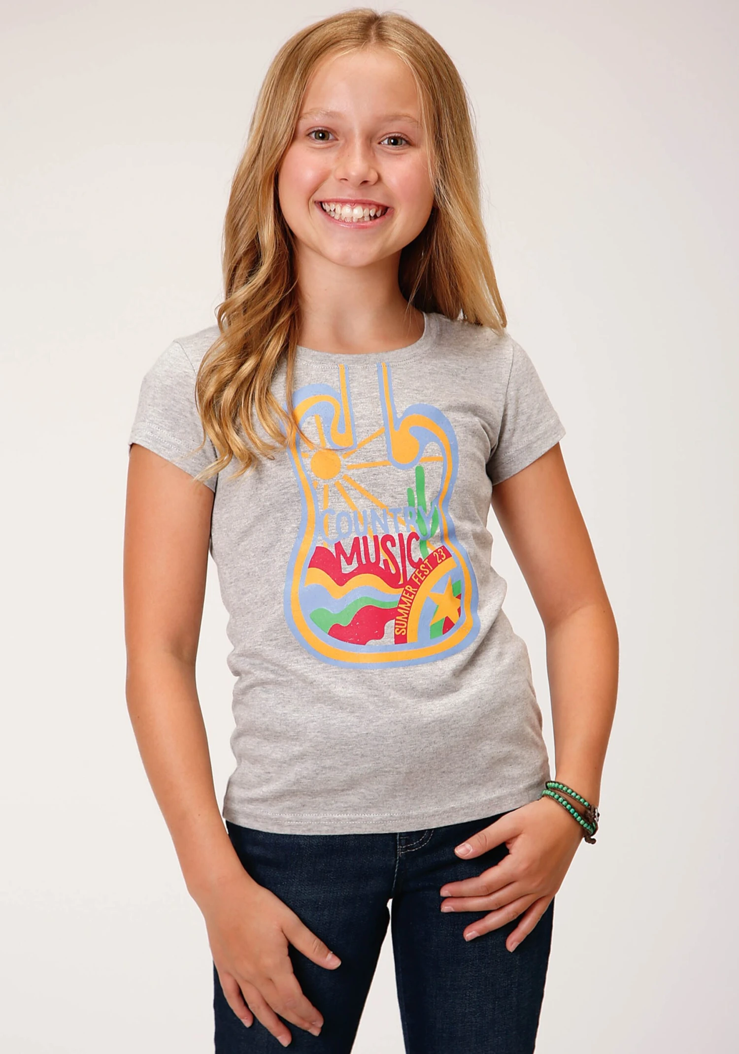 Girl’s Grey Jersey Knit Short Sleeve Tee * Scoop Neckline * Screen Printed Decoration