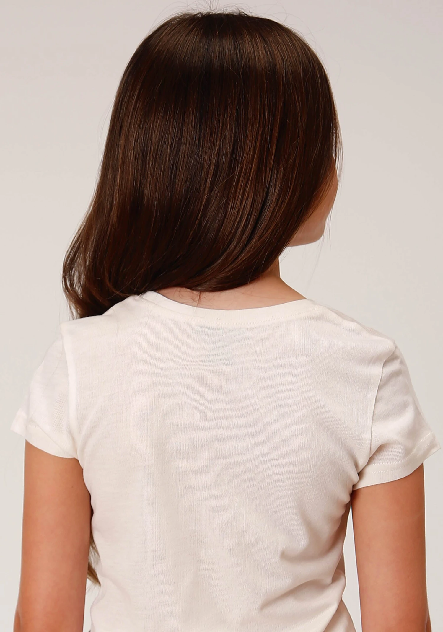 Girl’s Cream Jersey Knit Short Sleeve Tee * Scoop Neck * Screen Printed Decoration