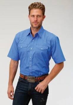 Men’s Short Sleeve Shirt * Snap Front * 1 Point Back Yoke * 1 Point Front Yokes * 1 Point Pkts & Flaps * Roper “R” Embroidery