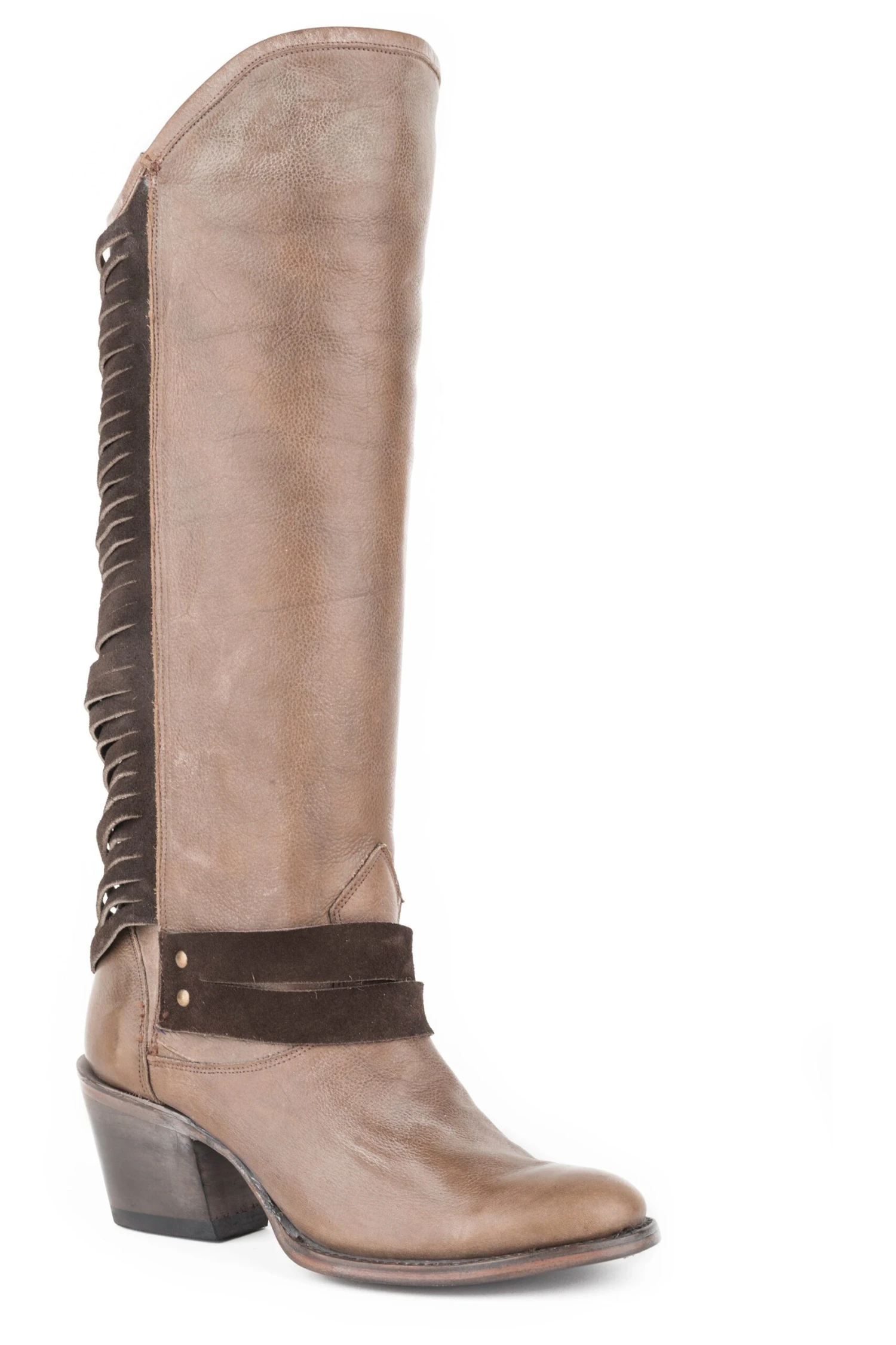 Gray Vamp And 17″ shaft * Chocolate Suede Rough Out Back Lacing * 3/4 YKK Side Zipper * Round Toe * Single Welt * All Leather Sole * Stacked Heel * Lemonwood Peg and Brass Nail Construction * All Leather Lining * Cushioned Leather Insole