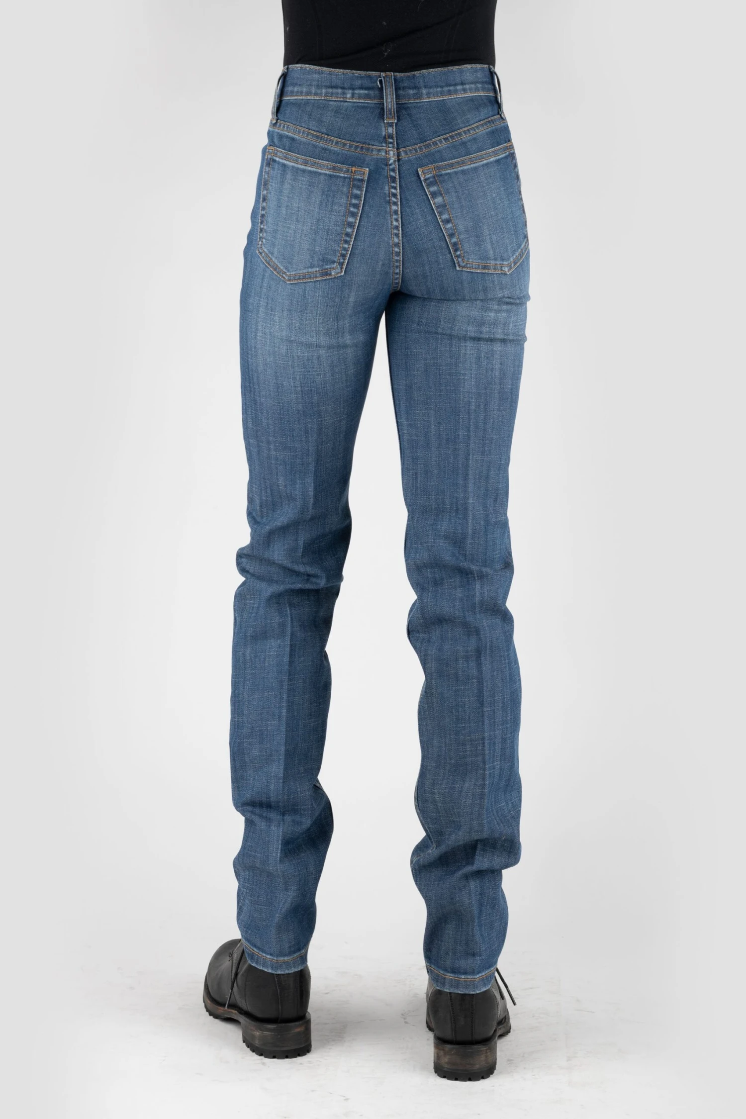 High Rise Straight Leg Fit Jean * Sits Just Below Waist * 5 Pocket Style * Contour Waistband * Finished Full Length Hem * Plain Back Pockets * Stetson Branded Buttons, Rivets, And Zipper * Gentle Sanding And Whisker Details