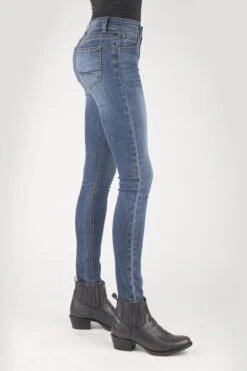 High Waist Skinny Western Jean * Sits At Waist * Slim Fit Through Thigh & Knee W/Narrow Leg Opening * 5 Pocket * X Back Pocket Deco Design * Stetson Branded Buttons, Rivets & Zipper * Tacking, Whisker And Sanding Finish Details