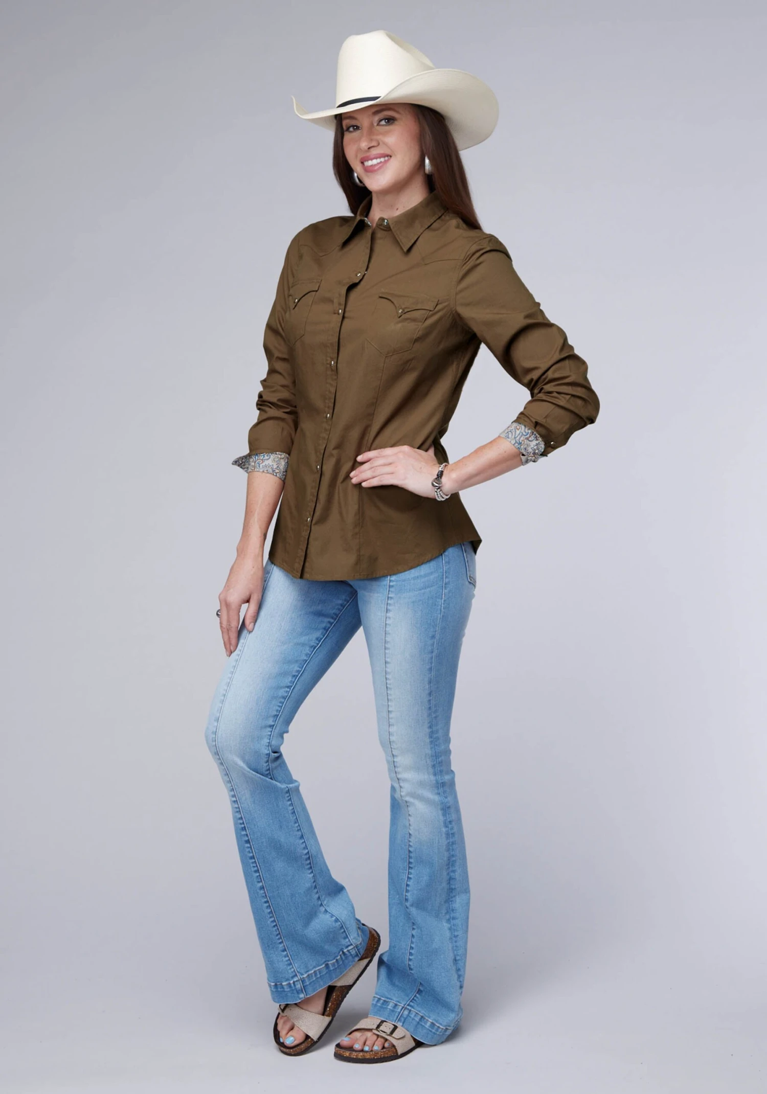 SKU: D2F5B 8319291195639 Categories: Tops, Women Tags: 100% COTTON, 2 Pocket, APPAREL, Color: BROWN, Long Sleeve, PERFORMANCE Y/D SOLID SNAP, Roper, Roper Woven, Snap, Solid, Summer24, Tops, West Made Collection, WOMENS, Woven, YARNDYE