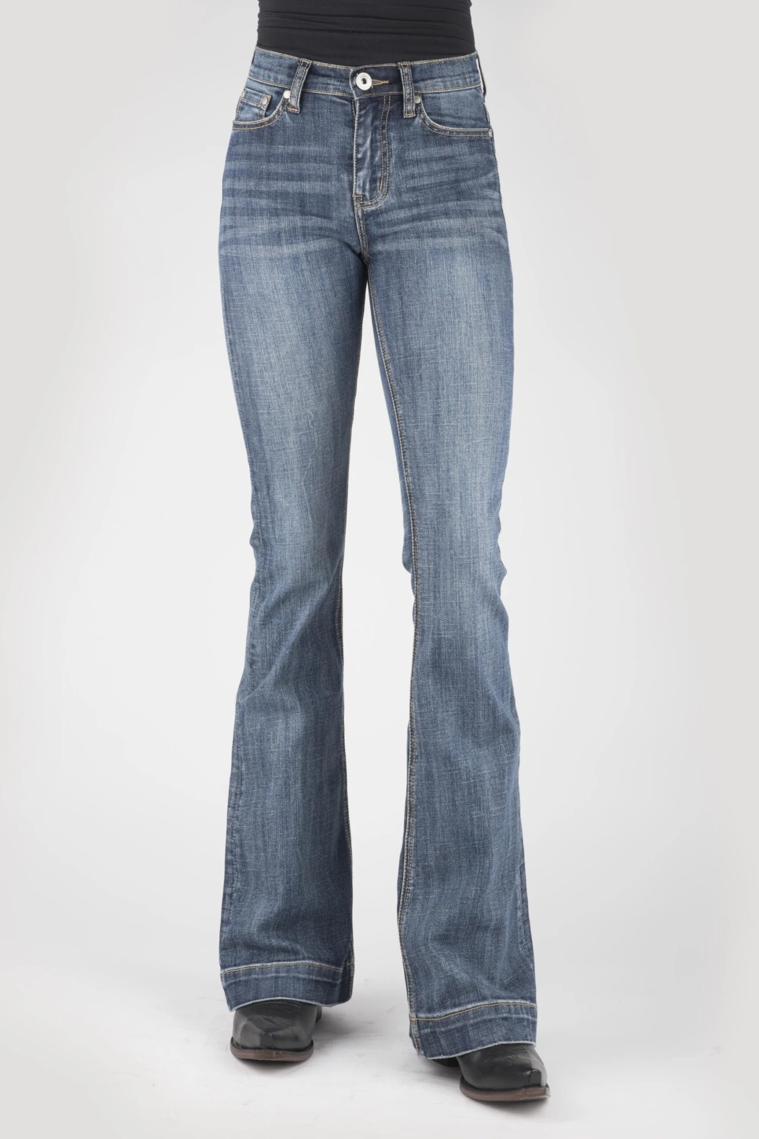 High Waist Flare Western Jean * Sits At Waist * Slim Fit Through Thigh And Knee With Flare Leg Opening * 5 Pocket Style * Plain Back Pocket * Stetson Branded Buttons, Rivets, And Zipper * Gentle Sanding And Whisker Details *