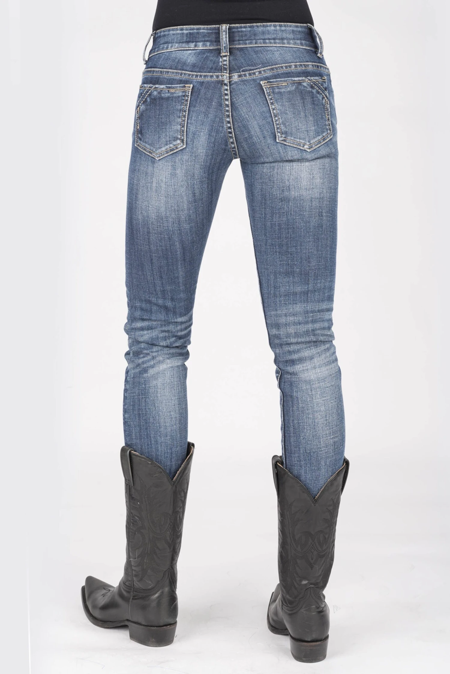 Skinny Straight Leg Fit * Sits Low On The Waist * Slim Fit Thigh W/Narrow Leg Opening * Contour Waist Band * Decorative Patch & Corner W/Contrast Stitching On Back Pockets * Stetson Branded Buttons & Zippers * Hand Sand & Blasting Detail